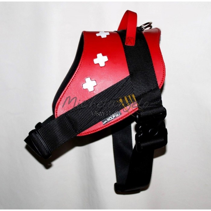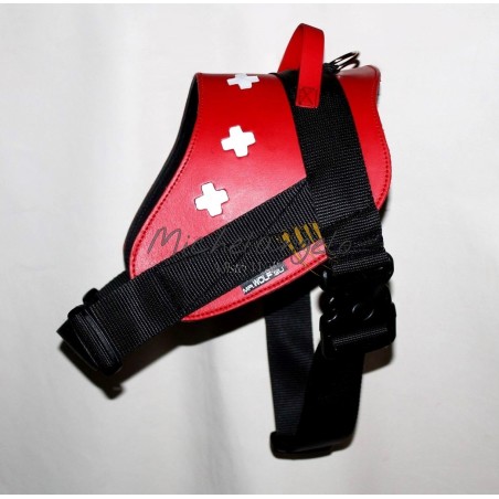 Pettorina in vero cuoio e con fasce in nylon per Bovaro del Bernese