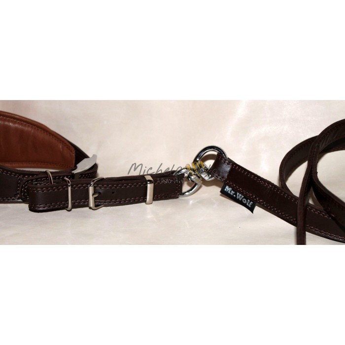 Collare/guinzaglio in pelle con fibbia e girella