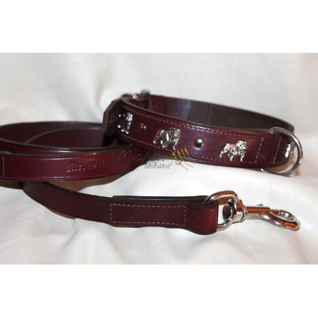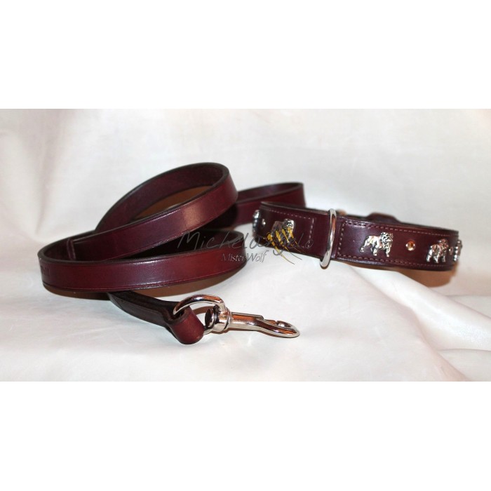 Collare e guinzaglio in vero cuoio per Bulldog Inglese