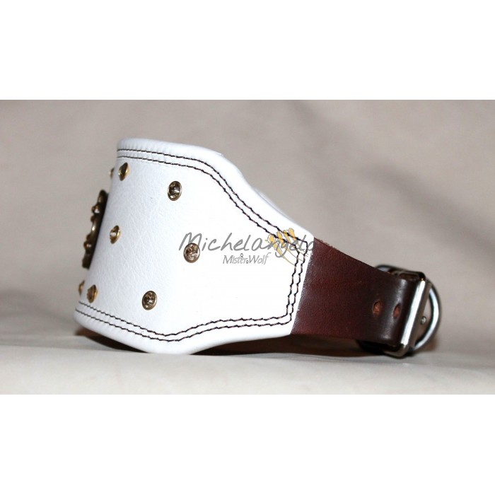 Collare in cuoio per Borzoi, rivestito in morbida pelle scamosciata. Fibbia.