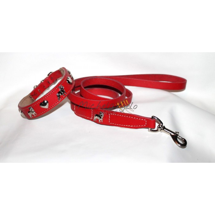 Collare e guinzaglio in cuoio per Bulldog Francese