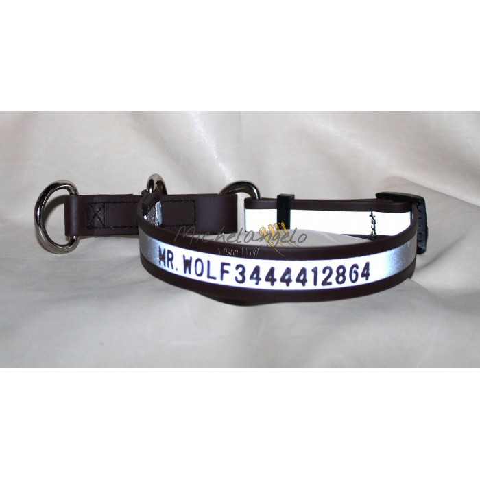 collare a scorrimento/semistrozzo in biothane con inserto riflettente.