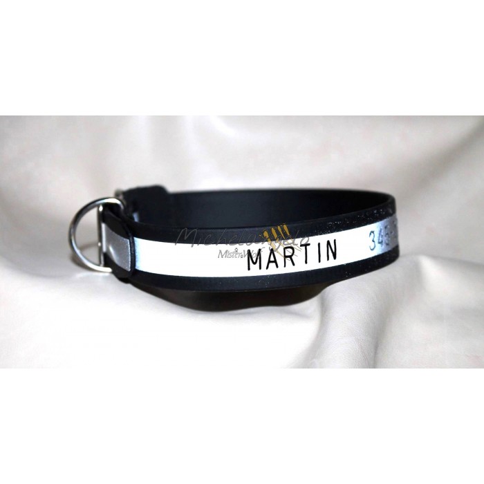 Ottima soluzione, collare con inserto catarinfrangente e contatti telefonici incisi
