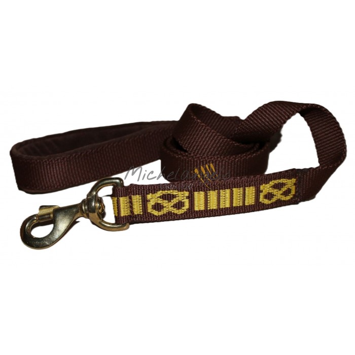 Guinzaglio in nylon ricamato con maniglia in tessuto.