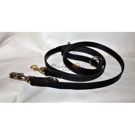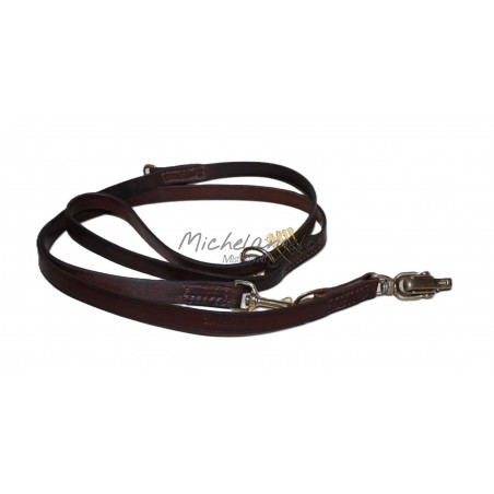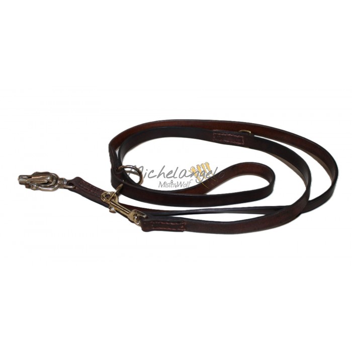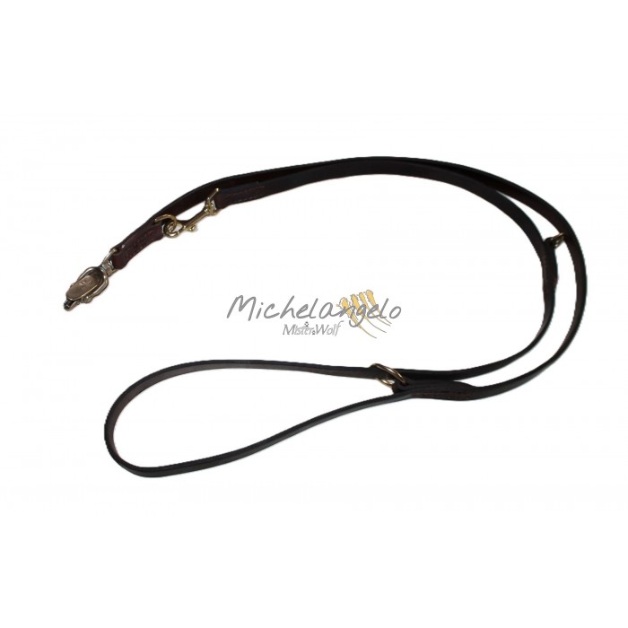 Guinzaglio da addestramento, regolabile, con moschettone a sgancio rapido, in cuoio da selleria.