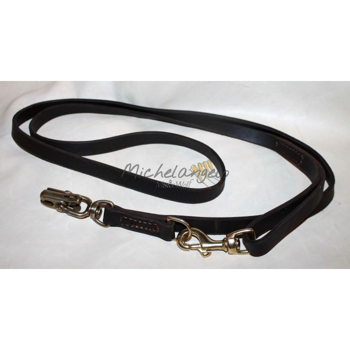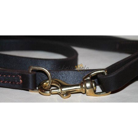 Guinzaglio lungo con moschettone a sgancio rapido. Vero cuoio, morbidissimo e resistente alla trazione.
