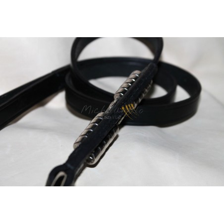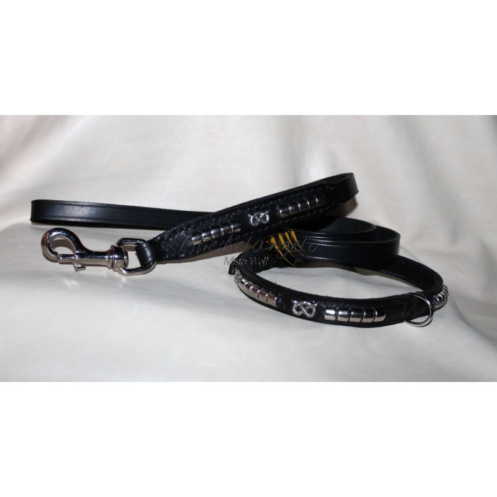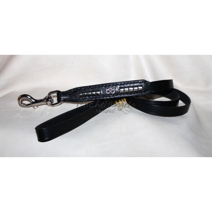 NICKEL : colore cuoio nero con moschettone in bronzo marino finitura nickel e borchie colore argento