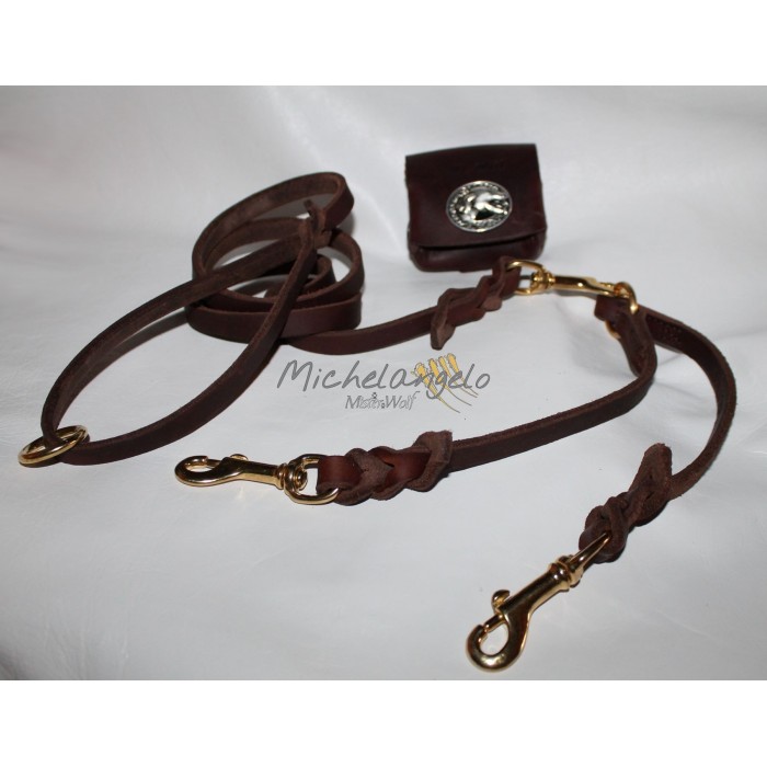 ATTENZIONE: il costo indicato si riferisce solo al guinzaglio. L'accoppiatore in cuoio e il porta sacchetti igienici in cuoio non sono compresi nel prezzo. le fotografie che mostrano gli abbinamenti sono puramente dimostrative.