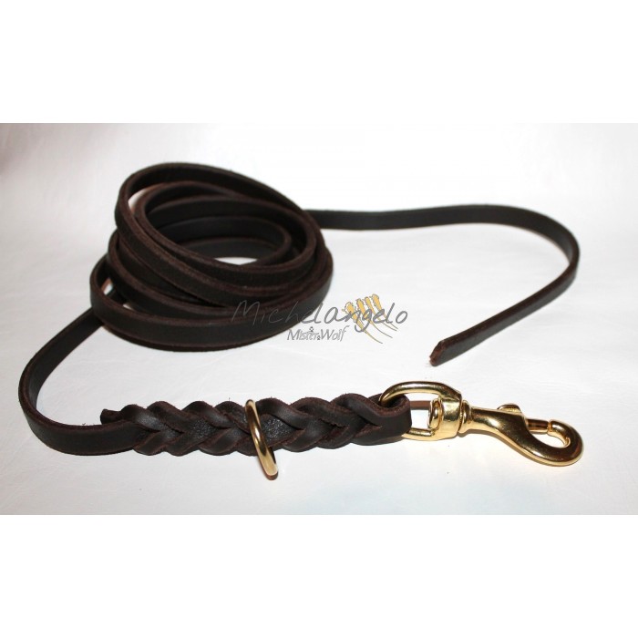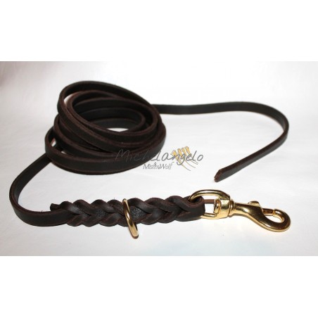 Lunghina in cuoio lavorato a treccia con anello
