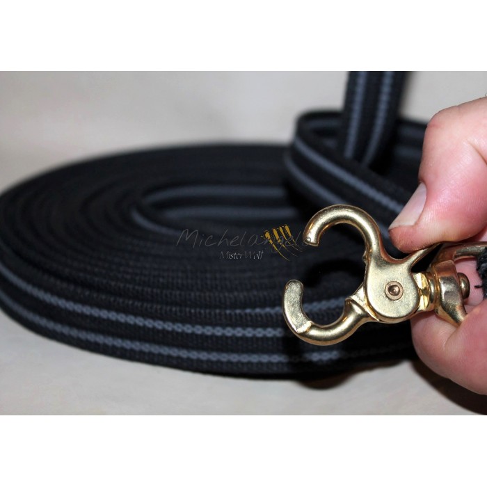 Lunghina in cotone gommato. Senza o con maniglia. Moschettone a granchio in ottone massiccio