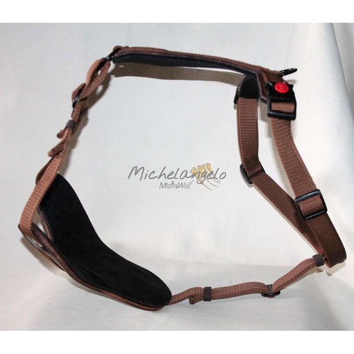 La pettorina e regolabile, tranne la cinghia dorsale.