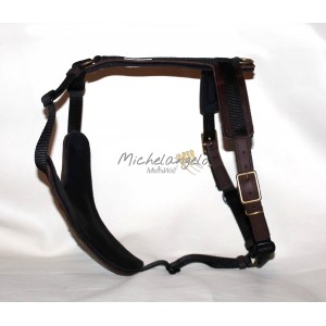 Pettorale in vero cuoio morbido e resistente, rivestito internamente in neoprene. Il neoprene è asportabile per facilitarne la pulizia.