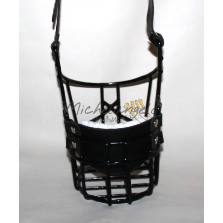 La fotografia con le misurazioni mostra la museruola sotto il rivestimento gommato nero.