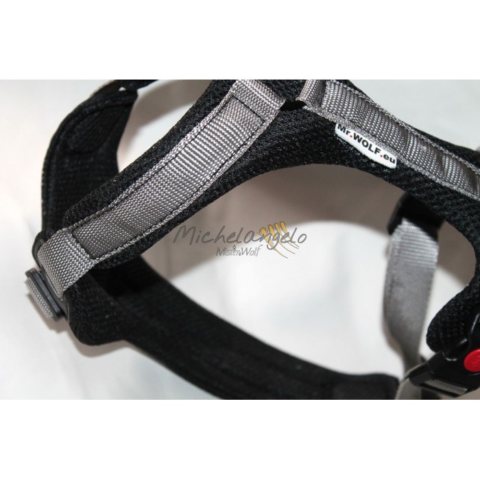 La pettorina è dotata di maniglia anch'essa rivestita internamente con tessuto tecnico traspirante certificato Oeko-Tex®