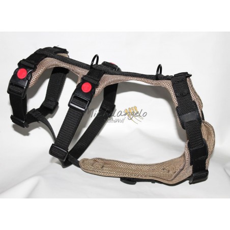 La forma della pettorina evita lo sfregamento nella zona delle ascelle.